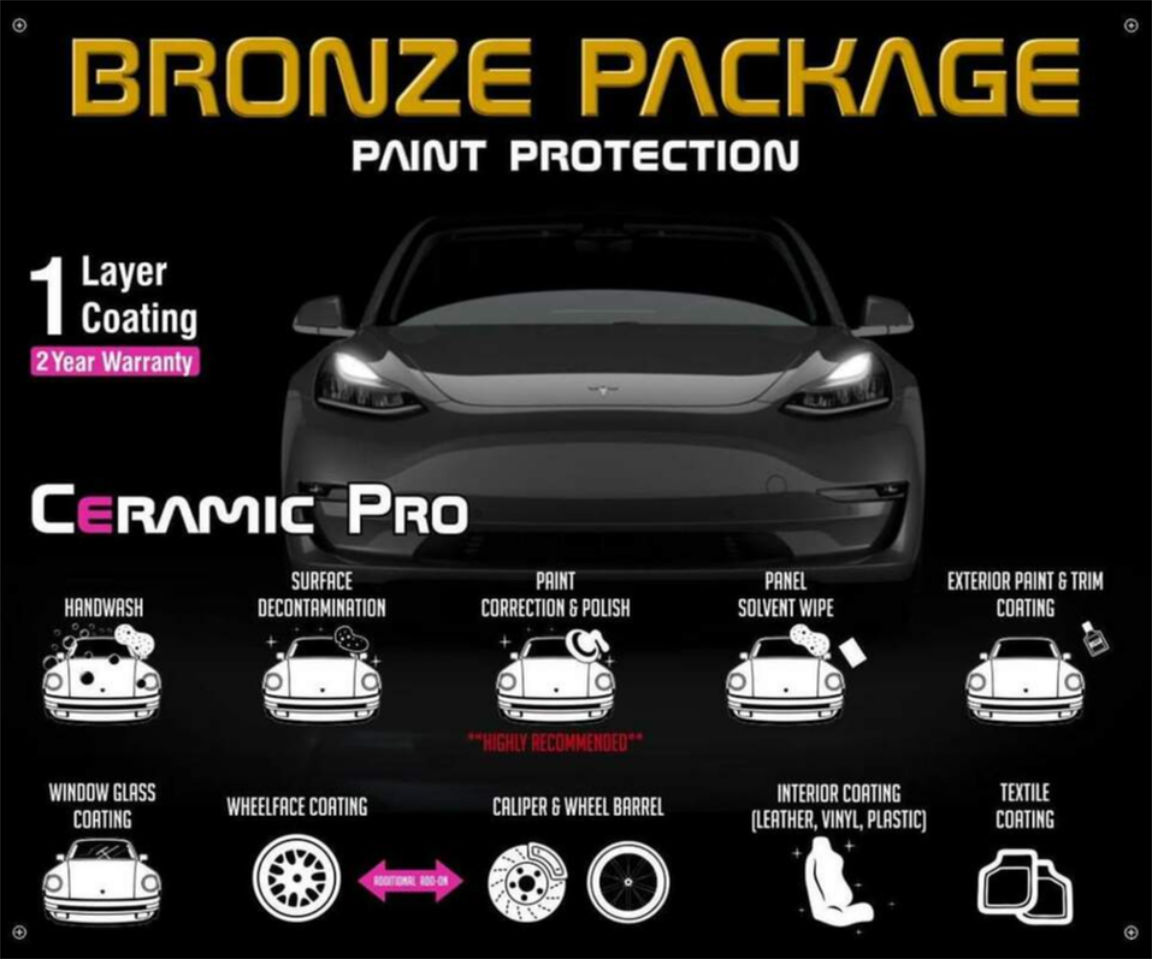 The Ceramic Pro bronze package is the perfect package to help you dive into the world of Ceramic coatings.The package comes with one layer of topcoat on the paint, and includes ceramic coating on the plastics, wheel faces, and glass. The Ceramic Pro bronze package is the perfect package for phoenix because it's going to make your car very easy to clean, stay shiny when dirty, and keep the paint smooth like a babys bottom. The Ceramic Pro bronze package comes with a 2 year warranty backed by carfax and will have you breaking necks when driving down your street. The shine from Ceramic Pro topcoat is unmatched and will have you in awe of your vehicles paint. No more having to worry about dirt, dust, bugs, and mud sticking to your paint! Ceramic Pro in phoenix will make it incredibly easy to just take a wet towel and wipe off the bugs, and grime left over from a family roadtrip. The Ceramic Pro bronze package will be your first step in Ceramic coating paint protection because we are confident it will make you want to move up to the Ceramic Pro silver package or Ceramic Pro gold package. Auto this world detailing is the best detail shop to get your Ceramic coating installed in Phoenix because we are very thorough with our prep on your vehicle. Our shop can guarantee Ceramic Pro in Phoenix will be the best investment for your vehicle for many years to come.