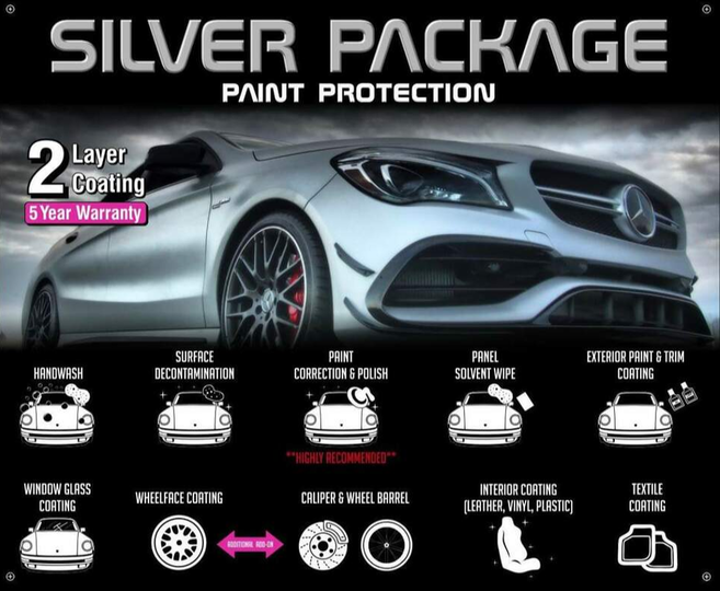 The Ceramic Pro silver package is the perfect choice of protection for your leased vehicle. The package includes one layer of ceramic pro 9H, one layer of ceramic pro light as a top coat, one layer of ceramic pro 9H on plastics and rims, and Ceramic pro rain on the windshield and front side windows. Our silver package comes with a five year warranty that is backed by car-fax and is sure to protect your vehicle through your lease term. Once your vehicle leaves the dealership lot, the responsibility is on you to protect your vehicle from the harsh elements of Phoenix. The Phoenix sun will have no chance against the amazing UV ray protective properties ceramic pro 9H and top coat has to offer. The Ceramic pro silver package is amazing when it is combined with clear bra in Phoenix because it will stop your leased vehicle from having any rock chips, swirls, bird poop or bug etching in the paint. Contact us today for a free quote!